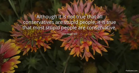 Mill, John Stuart. "Although it is not true that all conservatives are stupid people, it is true that most stupid people are conservative." FixQuotes. February 9, 2026. https://fixquotes.com/quotes/although-it-is-not-true-that-all-conservatives-32181/.
