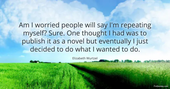 Wurtzel, Elizabeth. (2026, January 17). Am I worried people will say I'm repeating myself? Sure. One thought I had was to publish it as a novel but eventually I just decided to do what I wanted to do. FixQuotes. https://fixquotes.com/quotes/am-i-worried-people-will-say-im-repeating-myself-74330/