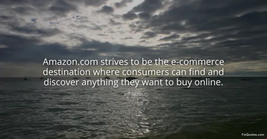 Bezos, Jeff. "Amazon.com strives to be the e-commerce destination where consumers can find and discover anything they want to buy online." FixQuotes. Accessed February 2, 2026. https://fixquotes.com/quotes/amazoncom-strives-to-be-the-e-commerce-109616/.