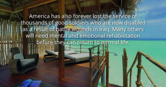 Olver, John. "America has also forever lost the service of thousands of good soldiers who are now disabled as a result of battle wounds in Iraq. Many others will need mental and emotional rehabilitation before they can return to normal life." FixQuotes. January 17, 2026. https://fixquotes.com/quotes/america-has-also-forever-lost-the-service-of-62075/.