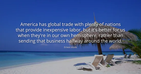 Istook, Ernest. (2026, January 17). America has global trade with plenty of nations that provide inexpensive labor, but it's better for us when they're in our own hemisphere, rather than sending that business halfway around the world. FixQuotes. https://fixquotes.com/quotes/america-has-global-trade-with-plenty-of-nations-66673/