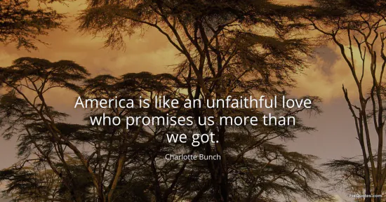 Bunch, Charlotte. (2026, January 16). America is like an unfaithful love who promises us more than we got. FixQuotes. https://fixquotes.com/quotes/america-is-like-an-unfaithful-love-who-promises-99358/
