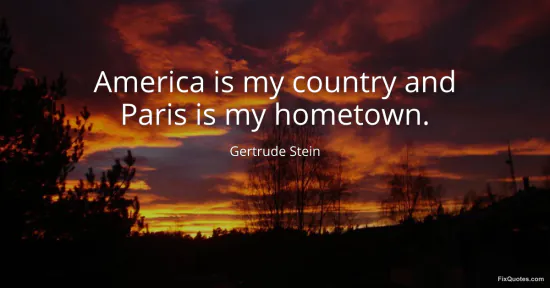 Stein, Gertrude. (2026, January 13). America is my country and Paris is my hometown. FixQuotes. https://fixquotes.com/quotes/america-is-my-country-and-paris-is-my-hometown-14547/