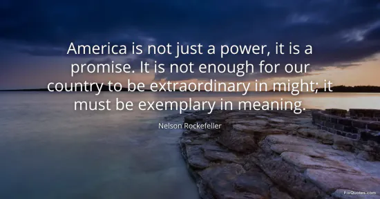 Rockefeller, Nelson. (2026, January 15). America is not just a power, it is a promise. It is not enough for our country to be extraordinary in might; it must be exemplary in meaning. FixQuotes. https://fixquotes.com/quotes/america-is-not-just-a-power-it-is-a-promise-it-is-9629/