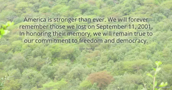 Bayh, Evan. "America is stronger than ever. We will forever remember those we lost on September 11, 2001. In honoring their memory, we will remain true to our commitment to freedom and democracy." FixQuotes. January 16, 2026. https://fixquotes.com/quotes/america-is-stronger-than-ever-we-will-forever-132935/.
