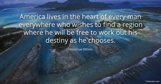 Wilson, Woodrow. (2026, January 18). America lives in the heart of every man everywhere who wishes to find a region where he will be free to work out his destiny as he chooses. FixQuotes. https://fixquotes.com/quotes/america-lives-in-the-heart-of-every-man-15046/