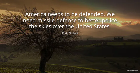 Giuliani, Rudy. "America needs to be defended. We need missile defense to better police the skies over the United States." FixQuotes. January 16, 2026. https://fixquotes.com/quotes/america-needs-to-be-defended-we-need-missile-93528/.