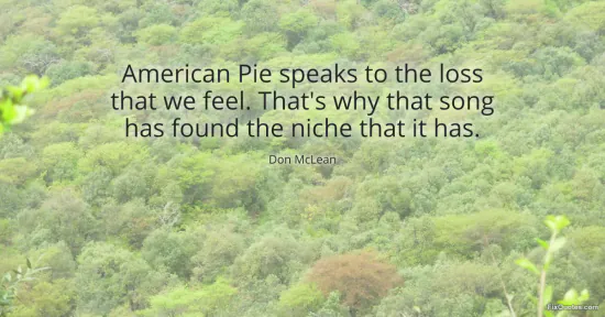 McLean, Don. "American Pie speaks to the loss that we feel. That's why that song has found the niche that it has." FixQuotes. January 16, 2026. https://fixquotes.com/quotes/american-pie-speaks-to-the-loss-that-we-feel-123980/.