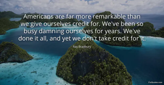 Bradbury, Ray. (2026, January 15). Americans are far more remarkable than we give ourselves credit for. We've been so busy damning ourselves for years. We've done it all, and yet we don't take credit for it. FixQuotes. https://fixquotes.com/quotes/americans-are-far-more-remarkable-than-we-give-163742/