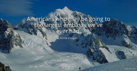 Lugar, Richard. (2026, January 17). Americans who may be going to the largest embassy we've ever had. FixQuotes. https://fixquotes.com/quotes/americans-who-may-be-going-to-the-largest-embassy-57823/