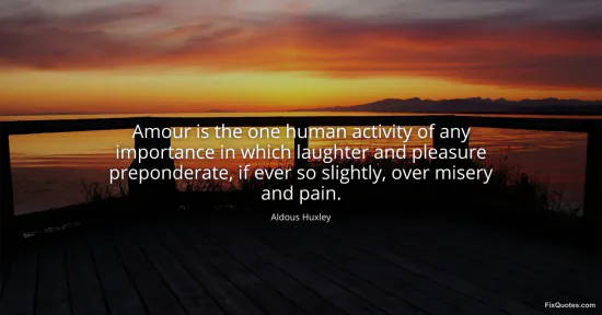 Huxley, Aldous. (2026, January 17). Amour is the one human activity of any importance in which laughter and pleasure preponderate, if ever so slightly, over misery and pain. FixQuotes. https://fixquotes.com/quotes/amour-is-the-one-human-activity-of-any-importance-29674/