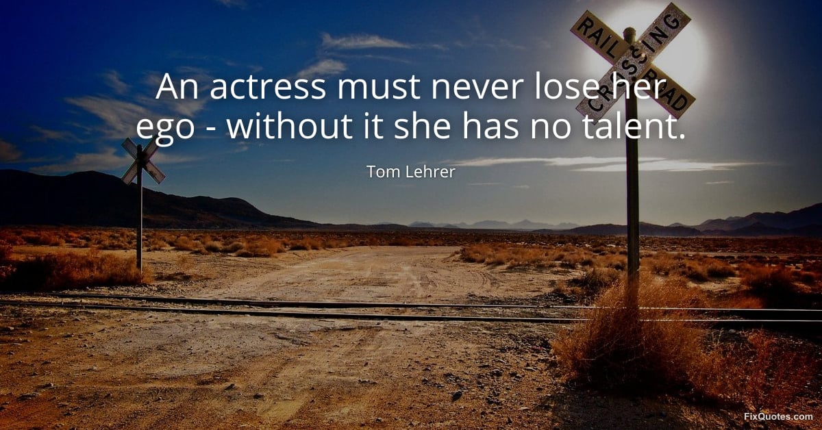 Lehrer, Tom. (2026, January 16). An actress must never lose her ego - without it she has no talent. FixQuotes. https://fixquotes.com/quotes/an-actress-must-never-lose-her-ego-without-it-131115/