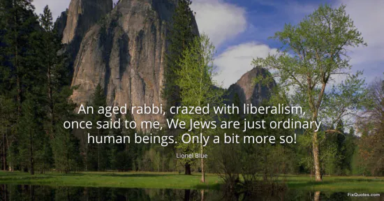 Blue, Lionel. (2026, January 18). An aged rabbi, crazed with liberalism, once said to me, We Jews are just ordinary human beings. Only a bit more so! FixQuotes. https://fixquotes.com/quotes/an-aged-rabbi-crazed-with-liberalism-once-said-to-5656/