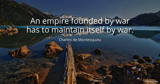 Montesquieu, Charles de. "An empire founded by war has to maintain itself by war." FixQuotes. January 15, 2026. https://fixquotes.com/quotes/an-empire-founded-by-war-has-to-maintain-itself-2800/.