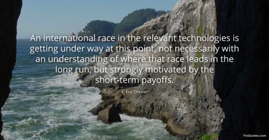 Drexler, K. Eric. (2026, January 16). An international race in the relevant technologies is getting under way at this point, not necessarily with an understanding of where that race leads in the long run, but strongly motivated by the short-term payoffs. FixQuotes. https://fixquotes.com/quotes/an-international-race-in-the-relevant-118512/