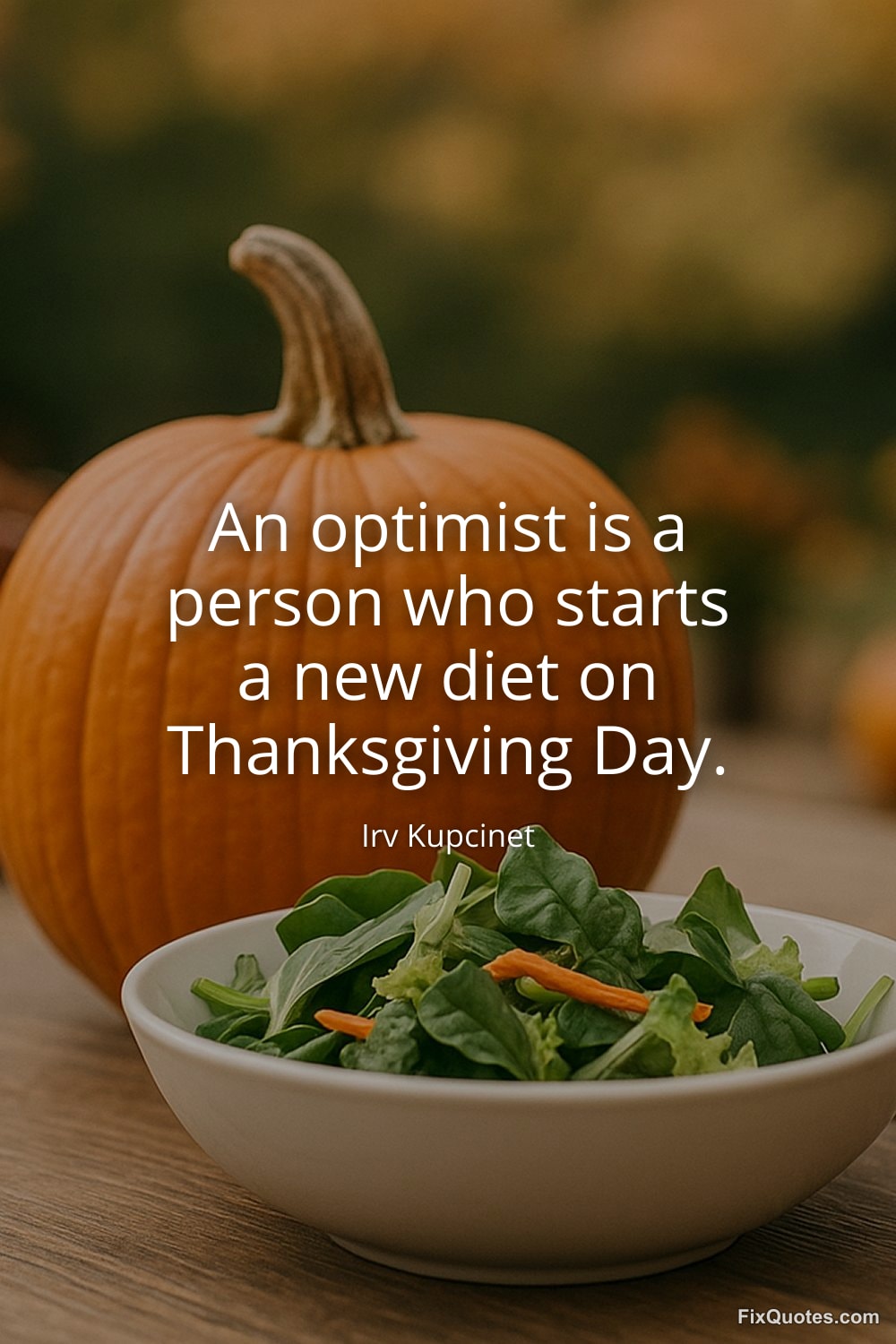 Kupcinet, Irv. (2026, February 7). An optimist is a person who starts a new diet on Thanksgiving Day. FixQuotes. https://fixquotes.com/quotes/an-optimist-is-a-person-who-starts-a-new-diet-on-128741/