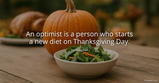 Kupcinet, Irv. "An optimist is a person who starts a new diet on Thanksgiving Day." FixQuotes. February 7, 2026. https://fixquotes.com/quotes/an-optimist-is-a-person-who-starts-a-new-diet-on-128741/.