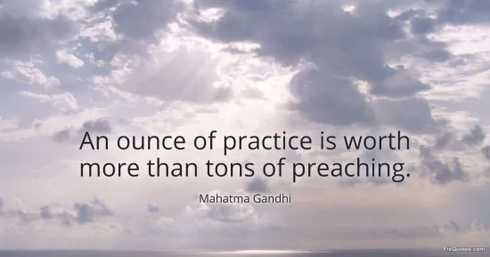 Gandhi, Mahatma. (2026, January 18). An ounce of practice is worth more than tons of preaching. FixQuotes. https://fixquotes.com/quotes/an-ounce-of-practice-is-worth-more-than-tons-of-13699/