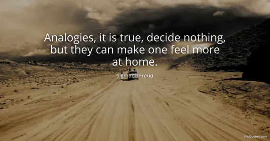Freud, Sigmund. (2026, January 18). Analogies, it is true, decide nothing, but they can make one feel more at home. FixQuotes. https://fixquotes.com/quotes/analogies-it-is-true-decide-nothing-but-they-can-22500/