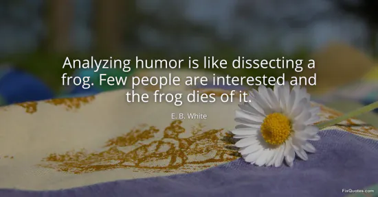 White, E. B. (2026, January 15). Analyzing humor is like dissecting a frog. Few people are interested and the frog dies of it. FixQuotes. https://fixquotes.com/quotes/analyzing-humor-is-like-dissecting-a-frog-few-30955/