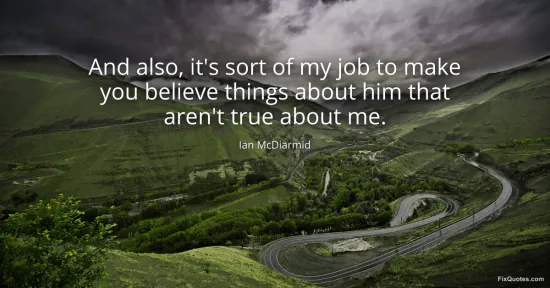 McDiarmid, Ian. (2026, January 16). And also, it's sort of my job to make you believe things about him that aren't true about me. FixQuotes. https://fixquotes.com/quotes/and-also-its-sort-of-my-job-to-make-you-believe-91884/