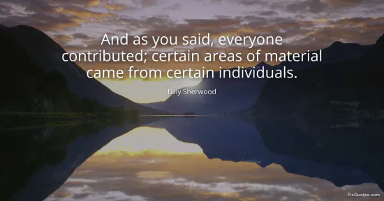 Sherwood, Billy. "And as you said, everyone contributed; certain areas of material came from certain individuals." FixQuotes. January 15, 2026. https://fixquotes.com/quotes/and-as-you-said-everyone-contributed-certain-142208/.