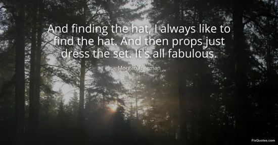 Freeman, Morgan. (2026, January 18). And finding the hat, I always like to find the hat. And then props just dress the set. It's all fabulous. FixQuotes. https://fixquotes.com/quotes/and-finding-the-hat-i-always-like-to-find-the-hat-936/