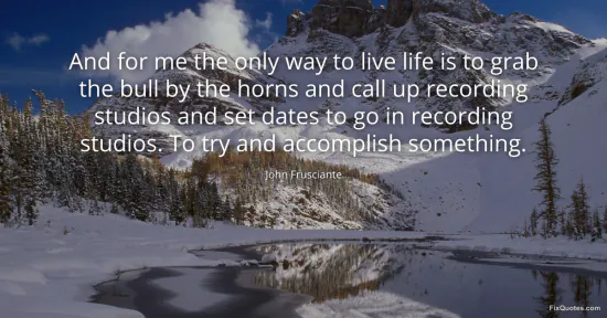 Frusciante, John. "And for me the only way to live life is to grab the bull by the horns and call up recording studios and set dates to go in recording studios. To try and accomplish something." FixQuotes. January 17, 2026. https://fixquotes.com/quotes/and-for-me-the-only-way-to-live-life-is-to-grab-68226/.