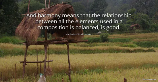 Stockhausen, Karlheinz. (2026, January 15). And harmony means that the relationship between all the elements used in a composition is balanced, is good. FixQuotes. https://fixquotes.com/quotes/and-harmony-means-that-the-relationship-between-91970/