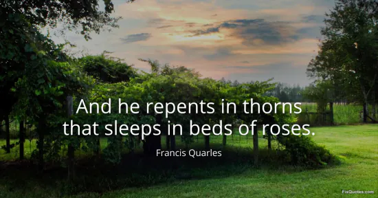Quarles, Francis. (2026, January 17). And he repents in thorns that sleeps in beds of roses. FixQuotes. https://fixquotes.com/quotes/and-he-repents-in-thorns-that-sleeps-in-beds-of-54649/