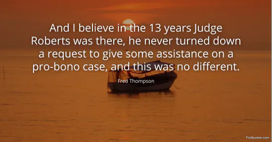 Thompson, Fred. (2026, January 15). And I believe in the 13 years Judge Roberts was there, he never turned down a request to give some assistance on a pro-bono case, and this was no different. FixQuotes. https://fixquotes.com/quotes/and-i-believe-in-the-13-years-judge-roberts-was-143620/