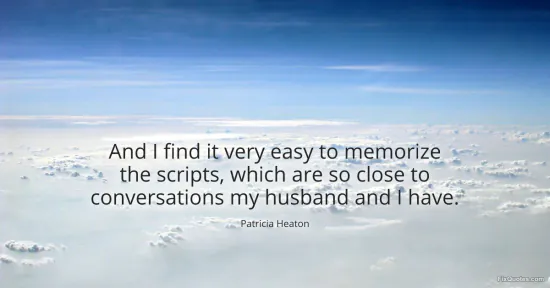 Heaton, Patricia. (2026, January 15). And I find it very easy to memorize the scripts, which are so close to conversations my husband and I have. FixQuotes. https://fixquotes.com/quotes/and-i-find-it-very-easy-to-memorize-the-scripts-151928/