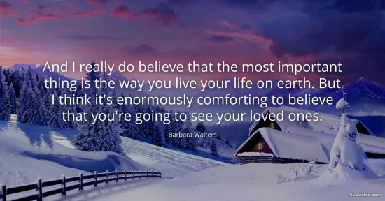 "And I really do believe that the most important thing is the way you live your life on earth. But I think it's enormously comforting to believe that you're going to see your loved ones"