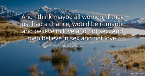 Wood, Beatrice. (2026, January 16). And I think maybe all women, if they just had a chance, would be romantic and believe in love and not sex. And men believe in sex and not love. FixQuotes. https://fixquotes.com/quotes/and-i-think-maybe-all-women-if-they-just-had-a-131831/