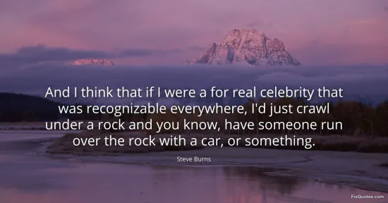 Burns, Steve. "And I think that if I were a for real celebrity that was recognizable everywhere, I'd just crawl under a rock and you know, have someone run over the rock with a car, or something." FixQuotes. January 15, 2026. https://fixquotes.com/quotes/and-i-think-that-if-i-were-a-for-real-celebrity-159719/.