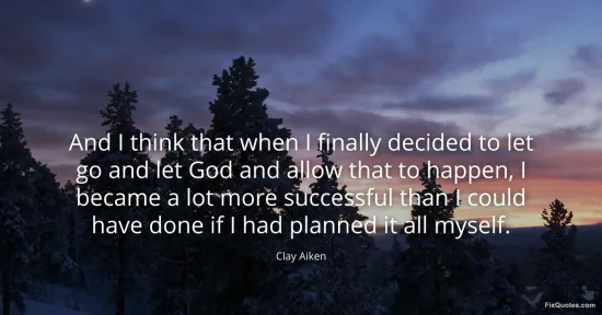 Aiken, Clay. "And I think that when I finally decided to let go and let God and allow that to happen, I became a lot more successful than I could have done if I had planned it all myself." FixQuotes. January 17, 2026. https://fixquotes.com/quotes/and-i-think-that-when-i-finally-decided-to-let-go-60186/.