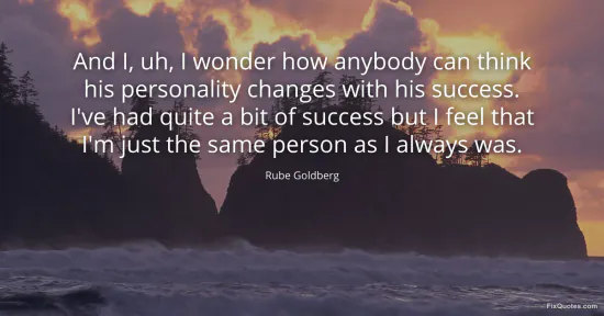 Goldberg, Rube. "And I, uh, I wonder how anybody can think his personality changes with his success. I've had quite a bit of success but I feel that I'm just the same person as I always was." FixQuotes. January 15, 2026. https://fixquotes.com/quotes/and-i-uh-i-wonder-how-anybody-can-think-his-159647/.