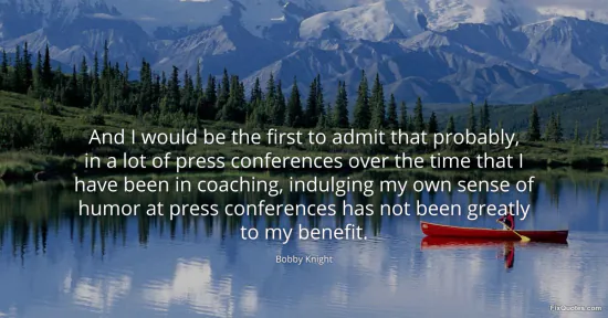 Knight, Bobby. (2026, January 17). And I would be the first to admit that probably, in a lot of press conferences over the time that I have been in coaching, indulging my own sense of humor at press conferences has not been greatly to my benefit. FixQuotes. https://fixquotes.com/quotes/and-i-would-be-the-first-to-admit-that-probably-27480/