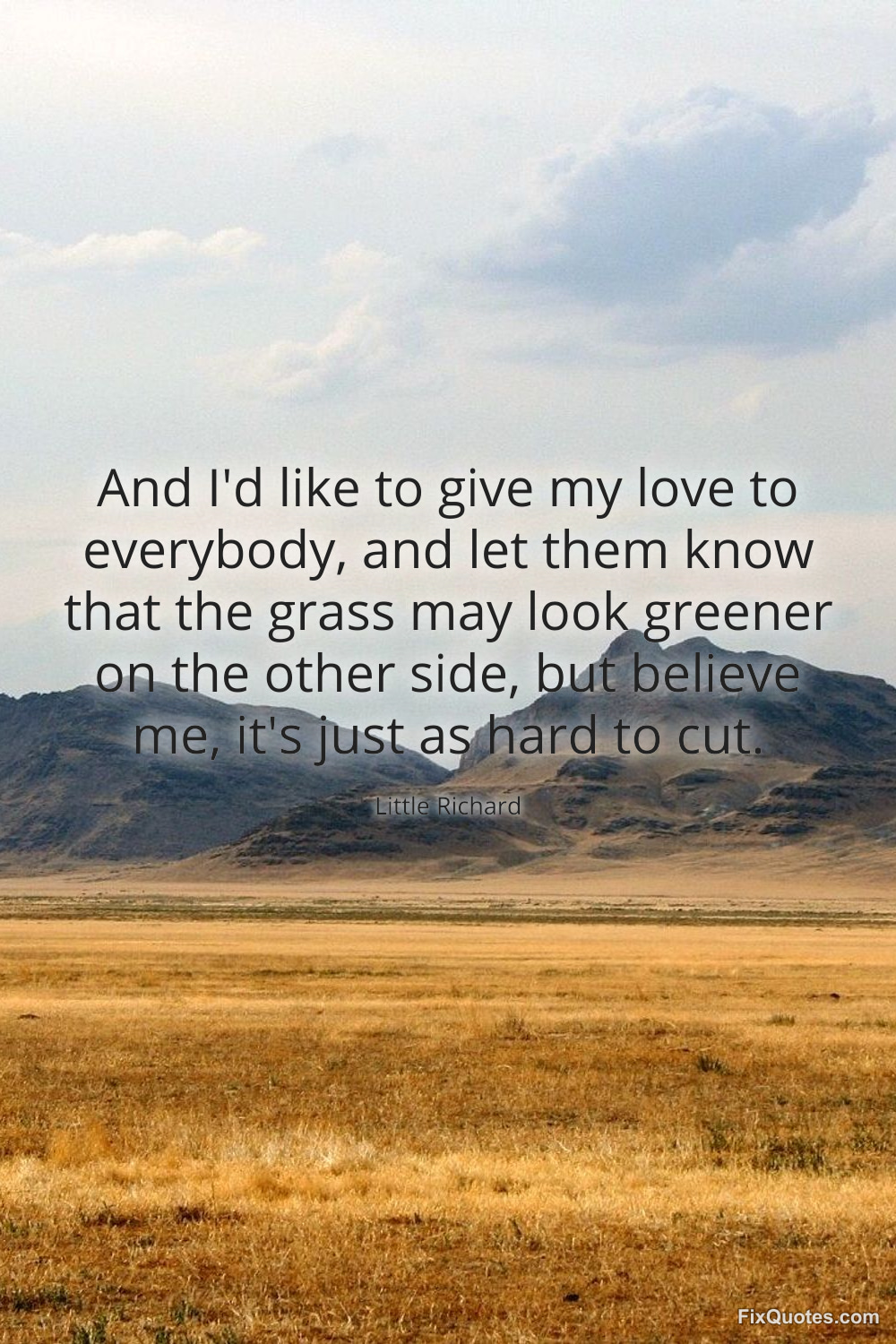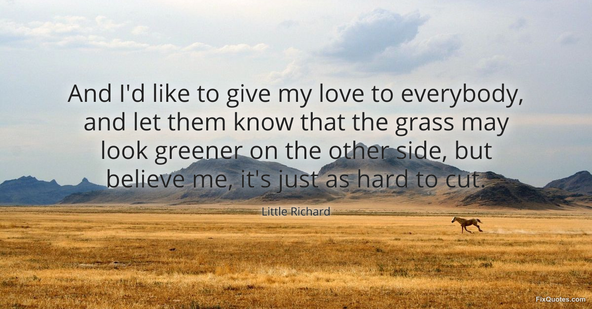 Richard, Little. (2026, January 15). And I'd like to give my love to everybody, and let them know that the grass may look greener on the other side, but believe me, it's just as hard to cut. FixQuotes. https://fixquotes.com/quotes/and-id-like-to-give-my-love-to-everybody-and-let-162215/