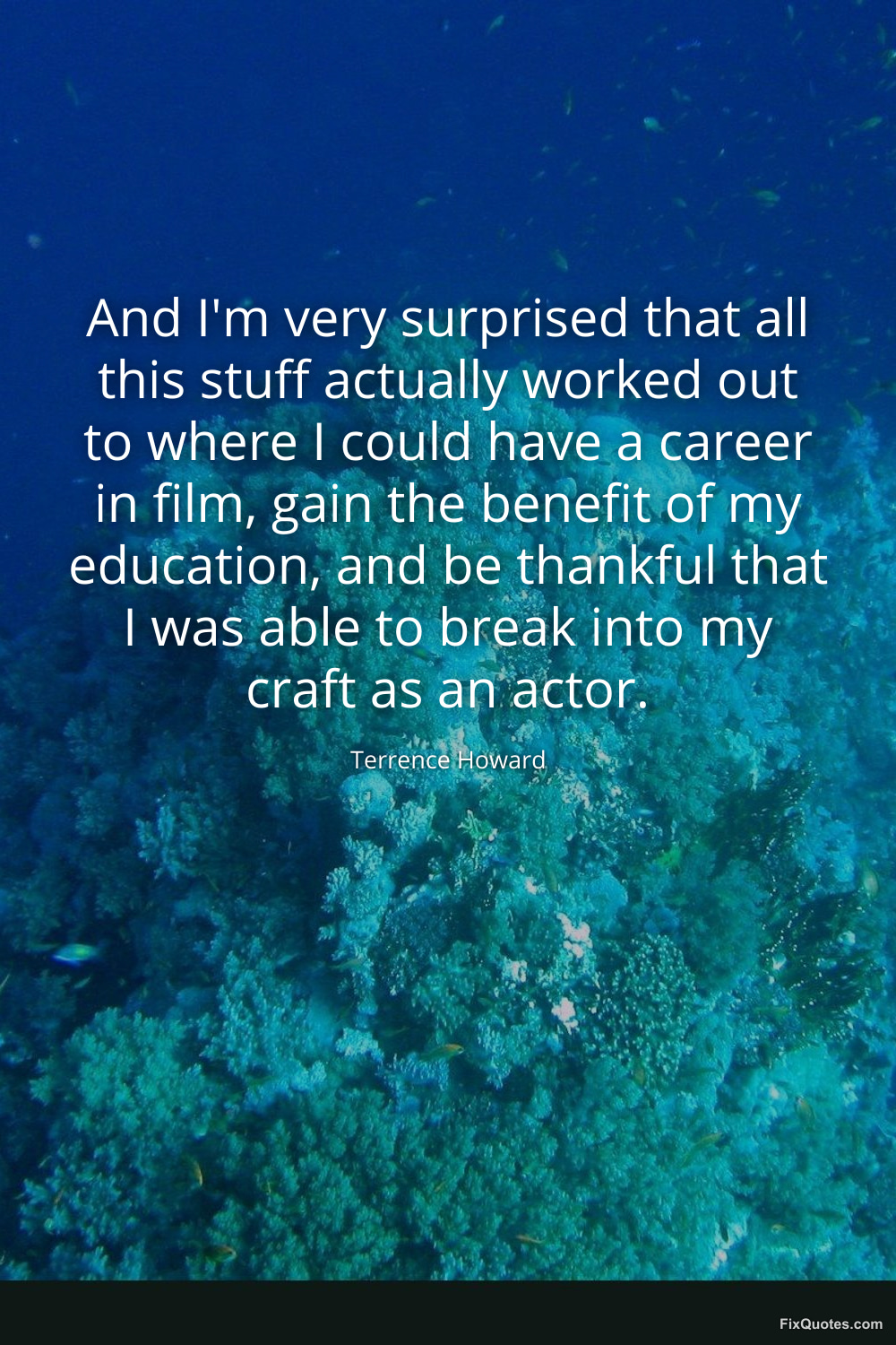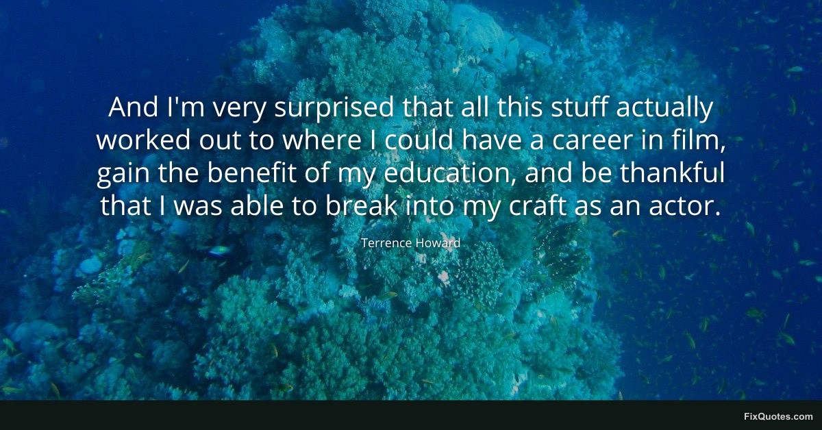 Howard, Terrence. (2026, January 16). And I'm very surprised that all this stuff actually worked out to where I could have a career in film, gain the benefit of my education, and be thankful that I was able to break into my craft as an actor. FixQuotes. https://fixquotes.com/quotes/and-im-very-surprised-that-all-this-stuff-90407/