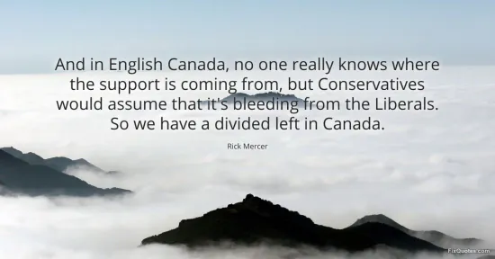 Mercer, Rick. "And in English Canada, no one really knows where the support is coming from, but Conservatives would assume that it's bleeding from the Liberals. So we have a divided left in Canada." FixQuotes. January 18, 2026. https://fixquotes.com/quotes/and-in-english-canada-no-one-really-knows-where-7818/.