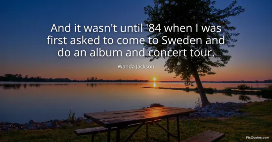 Jackson, Wanda. (2026, January 16). And it wasn't until '84 when I was first asked to come to Sweden and do an album and concert tour. FixQuotes. https://fixquotes.com/quotes/and-it-wasnt-until-84-when-i-was-first-asked-to-105803/