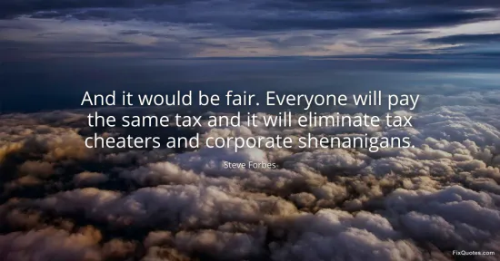 Fairness is doing a lot of ideological lifting here. When Steve Forbes promises a tax system where "everyone will pay the same tax", he is selling a moral shortcut: replace the messy, value-laden arguments about who should shoulder more with a single, clean number. The rhetorical move is classic market populism. It borrows the language of egalitarianism while advancing a policy vision - typically a flat tax - that tends to advantage higher earners and simplify obligations for capital.