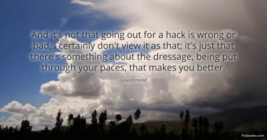 Ormond, Julia. (2026, January 16). And it's not that going out for a hack is wrong or bad, I certainly don't view it as that; it's just that there's something about the dressage, being put through your paces, that makes you better. FixQuotes. https://fixquotes.com/quotes/and-its-not-that-going-out-for-a-hack-is-wrong-or-120283/