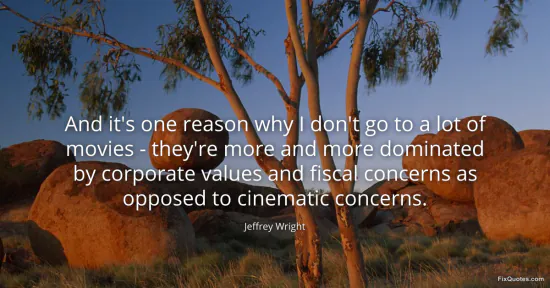 Wright, Jeffrey. (2026, January 15). And it's one reason why I don't go to a lot of movies - they're more and more dominated by corporate values and fiscal concerns as opposed to cinematic concerns. FixQuotes. https://fixquotes.com/quotes/and-its-one-reason-why-i-dont-go-to-a-lot-of-170565/