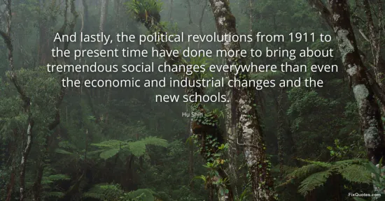 Shih, Hu. "And lastly, the political revolutions from 1911 to the present time have done more to bring about tremendous social changes everywhere than even the economic and industrial changes and the new schools." FixQuotes. January 18, 2026. https://fixquotes.com/quotes/and-lastly-the-political-revolutions-from-1911-to-183/.