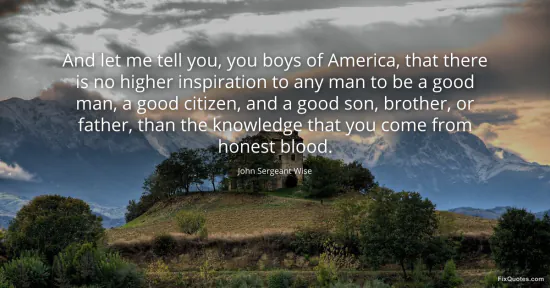 Wise, John Sergeant. "And let me tell you, you boys of America, that there is no higher inspiration to any man to be a good man, a good citizen, and a good son, brother, or father, than the knowledge that you come from honest blood." FixQuotes. January 15, 2026. https://fixquotes.com/quotes/and-let-me-tell-you-you-boys-of-america-that-158714/.