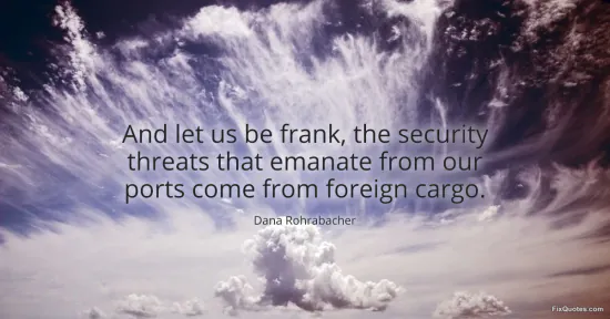Rohrabacher, Dana. (2026, January 17). And let us be frank, the security threats that emanate from our ports come from foreign cargo. FixQuotes. https://fixquotes.com/quotes/and-let-us-be-frank-the-security-threats-that-38981/