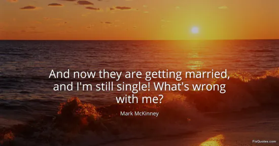 McKinney, Mark. (2026, January 18). And now they are getting married, and I'm still single! What's wrong with me? FixQuotes. https://fixquotes.com/quotes/and-now-they-are-getting-married-and-im-still-7837/