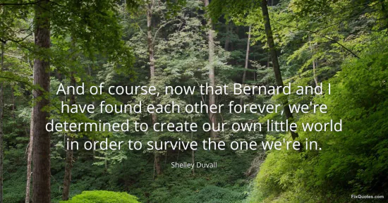 Duvall, Shelley. (2026, January 16). And of course, now that Bernard and I have found each other forever, we're determined to create our own little world in order to survive the one we're in. FixQuotes. https://fixquotes.com/quotes/and-of-course-now-that-bernard-and-i-have-found-84153/